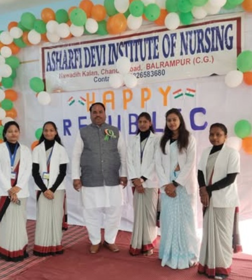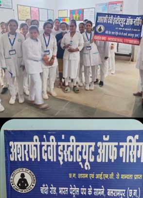 Ashrafi Devi Institute of Nursing is located in Balrampur district ofChhattisgarh, is a private institution established in 2015. The institute is approved by the Indian Nursing Council (INC) and is committed to providing quality nursing education that blends academic excellence with practical training. The college offers undergraduate programs such as B.Sc. Nursing and General Nursing & Midwifery (GNM), both aimed at preparing students to become competent and compassionate nursing professionals capable of serving in diverse healthcare settings. The institute maintains a supportive and student-centered environment with a team of qualified and dedicated faculty members who mentor and guide learners throughout their studies. The campus is equipped with modern classrooms, advanced laboratories, and a well-stocked library offering an extensive collection of nursing and medical books, journals, and digital resources. To encourage holistic development, the college also promotes sports and extracurricular activities, providing facilities for both indoor and outdoor games that help students maintain physical fitness and teamwork skills. Additionally, hostel accommodation, transport service.The college gives proper clinical training for students.